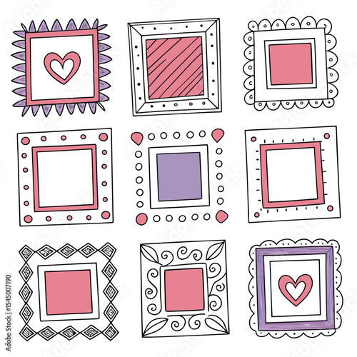 Obraz premium Nine hand drawn decorative square frames