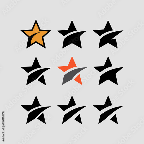 Obraz premium Nine stylized stars one orange two orange and gray and seven black symbol shape