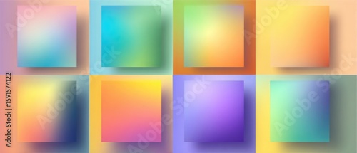 Fototapeta premium Nine vibrant, square, overlapping, gradient-filled shapes