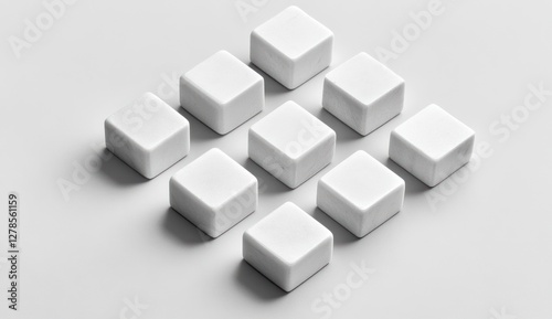 Fototapeta premium Nine white cubic blocks arranged in a grid pattern on a light gray background.