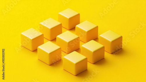 © matoya, Obraz premium Nine yellow cubes arranged in a grid pattern on a yellow background.