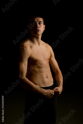 Naklejka premium Nineteen year old teen boy shirtless portrait