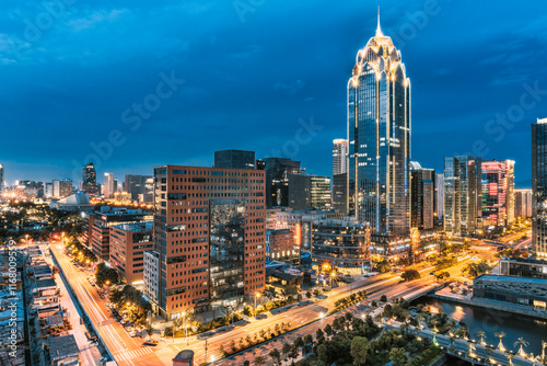 © AlexTaoWang, Obraz premium Ningbo city skyline at twilight, China