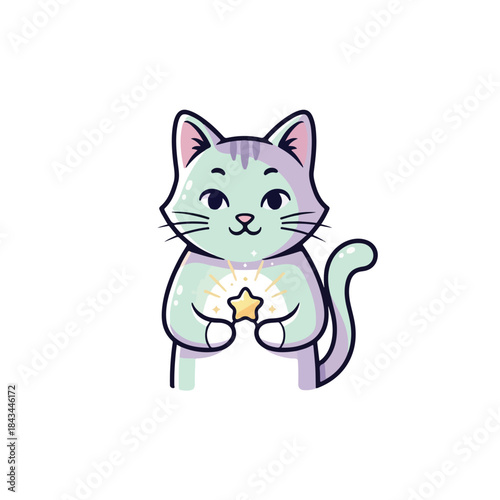 © asad, Fototapeta premium Ninja Cat in Black and White, Fierce Feline Character Illustration