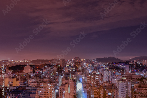 Obraz premium Niterói, Rio de Janeiro, Brazil - CIRCA 2021: Long exposure urban night photography with buildings and lights of a Brazilian city