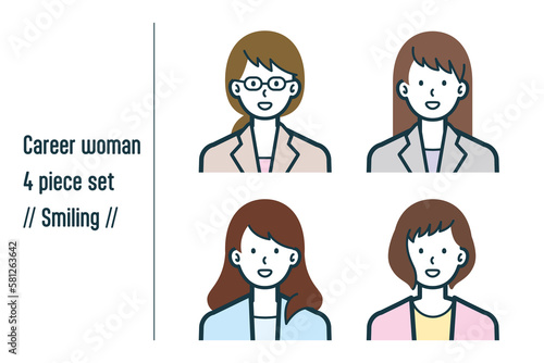 Naklejka premium ほほえんでいるキャリアウーマンの4点セットno.1