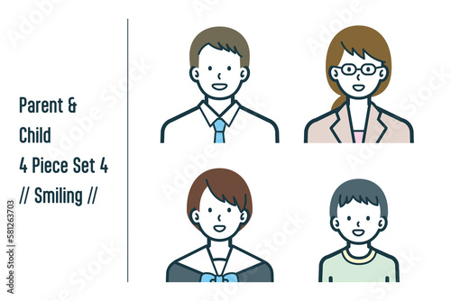 Naklejka premium ほほえんでいる親子の4点セットno.4