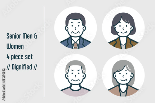 © Yuwaii design, Naklejka premium 凛々しいシニア男女の4点セットno.1