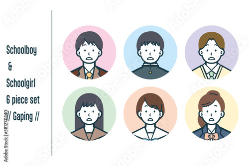 © Yuwaii design, Naklejka premium キョトンとした男女の学生の6点セットno.1