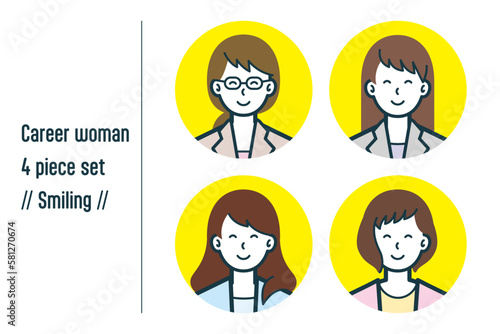 © Yuwaii design, Naklejka premium ほほえんでいるキャリアウーマンの4点セットno.1