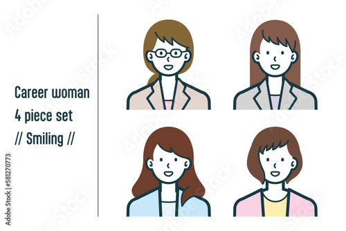 Naklejka premium ほほえんでいるキャリアウーマンの4点セットno.1