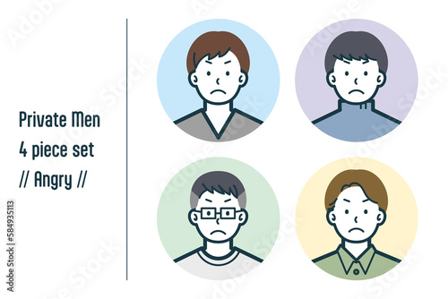 Naklejka premium 怒っている私服の男性の4点セットno.1