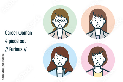 © Yuwaii design, Naklejka premium 激怒しているキャリアウーマンの4点セットno.1