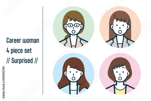 © Yuwaii design, Naklejka premium びっくりしているキャリアウーマンの4点セットno.1
