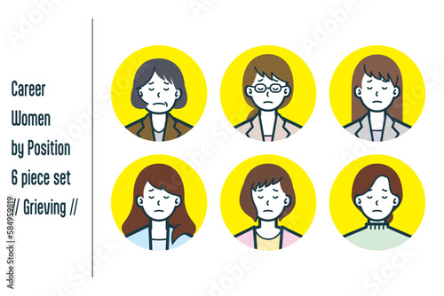 © Yuwaii design, Naklejka premium 悲しんでいる役職ごとのキャリアウーマンの6点セットno.1