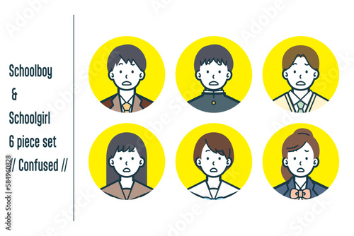 © Yuwaii design, Naklejka premium 困惑している男女の学生の6点セットno.1