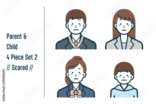 Naklejka premium 怖がっている親子の4点セットno.2