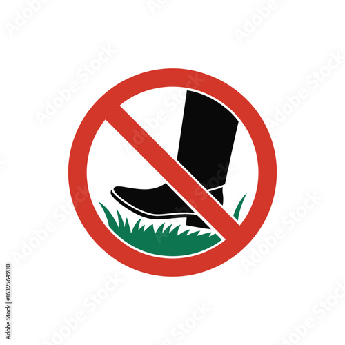 © MDMINTU, Obraz premium No boots on grass sign