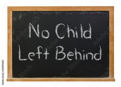 Obraz premium No child left behind written in white chalk on a black chalkboard isolated on...