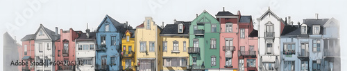 © Lumin5e616f1, Obraz premium 白い背景に彩り豊かな建物が並ぶ No.006 | Colorful Buildings on a White Background Generative AI