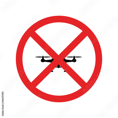 Fototapeta premium No drone zone symbol aerial surveillance prohibition sign drone flying ban...