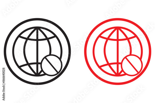 Fototapeta premium No internet globe icon on black circle. Offline connection concept