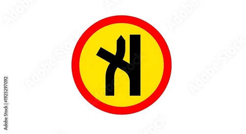 © Green Berg, Obraz premium No overtaking road sign with red circle and yellow background
