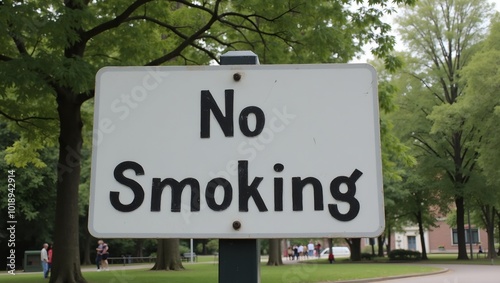 © GMeta, Fototapeta premium No Smoking sign on post in park trees in background