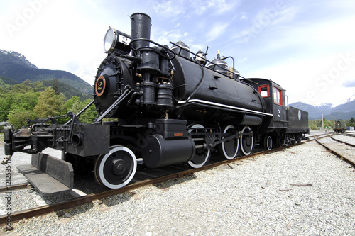 © David, Fototapeta premium No 2 Steam Engine left side full on tracks with blue sky