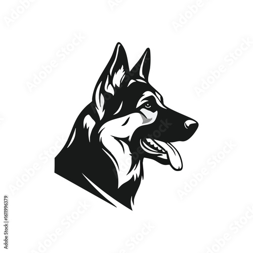 © Lull, Naklejka premium Noble German Shepherd Dog Head Logo. Vector artwork featuring the distinct side view of a brave domestic canine. Represents protection and strength, perfect for various design needs.