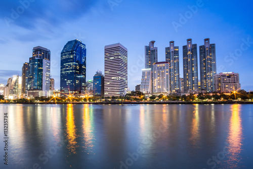 © suphaporn, Fototapeta premium nocna panorama Suan benja kitti w Bangkoku w Tajlandii.