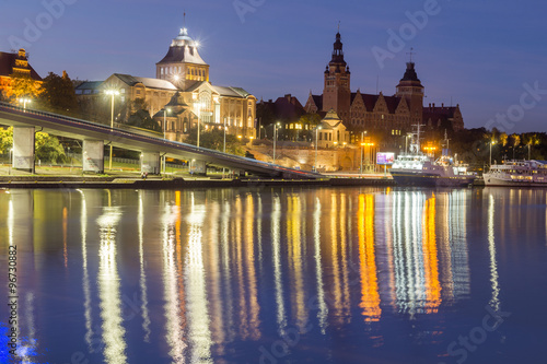 © Mike Mareen, Fototapeta premium Nocna panorama Tarasy Haken w Szczecinie