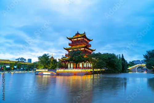 Fototapeta premium Nocny krajobraz chińskich ogrodów klasycznych.