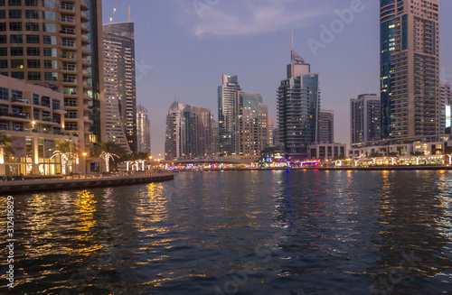 © greta gabaglio, Fototapeta premium Nocny widok dzielnicy Dubai Marina w Dubaju