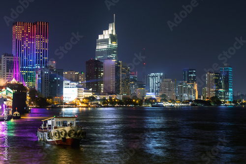 © Vladimir Bikhovskiy, Obraz premium nocny widok miasta Ho Chi Minh. widok z rzeki