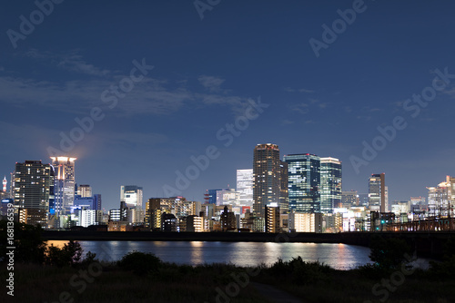 © Tsukasuke, Fototapeta premium Nocny widok miasta Yodogawa i Osaka