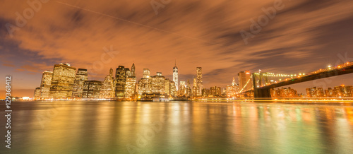 Fototapeta premium Nocny widok na Manhattan i Brooklyn Bridge