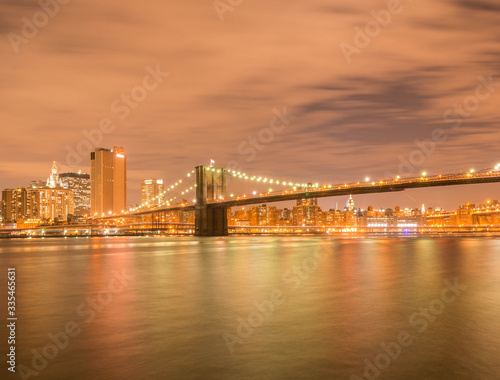 Obraz premium Nocny widok na Manhattan i Brooklyn Bridge