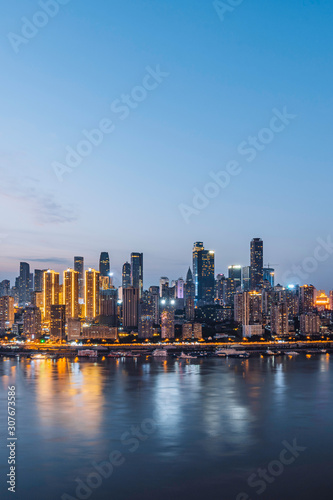 © Govan, Fototapeta premium Nocny widok z wysokich budynków wzdłuż rzeki Jangcy w Chongqing w Chinach