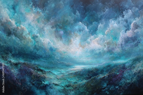 © Radya, Fototapeta premium Nocturnal Mountainous Landscape Painting
