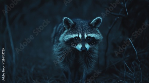 © Pure Imagination, Fototapeta premium Nocturnal Raccoon in Dark Forest at Night
