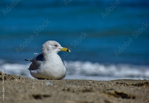 Fototapeta premium Non-breeding adult ring-bill gull relaxing on the beach