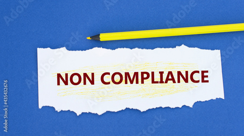 Fototapeta premium NON COMPLIANCE - words on a torn white paper on a blue background