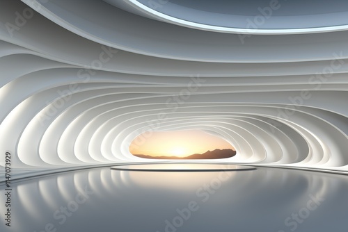 © Niko_Dali, Obraz premium Non-standard architecture with circular elements without sharp corners and in white.