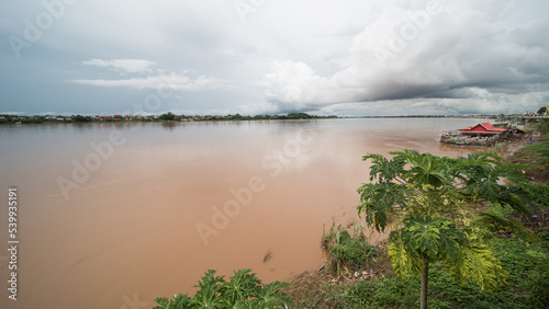 © Ipsimus, Fototapeta premium Nong Khai, a city in north-east Thailand situated directly on the mekong river on a cloudy day in the rainy season.