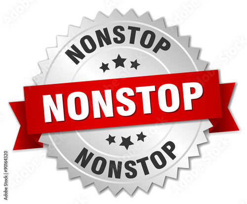 © Aquir, Obraz premium nonstop 3d silver badge with red ribbon