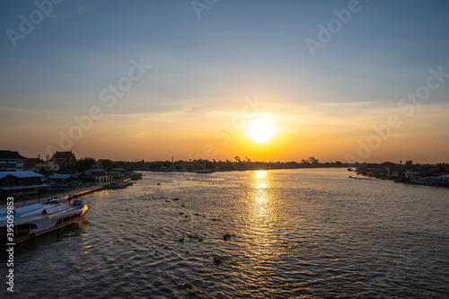 Naklejka premium NONTHABURI, THAILAND - November 14, 2020: Beautiful Sunset View of Koh Kred...