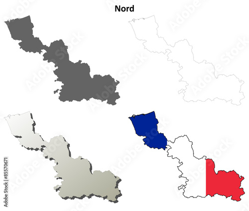 Fototapeta premium Nord (Nord-Pas-de-Calais) outline map set