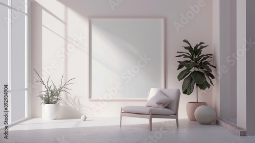 Fototapeta premium Nordic-inspired blank frame mockup. Simple interior design