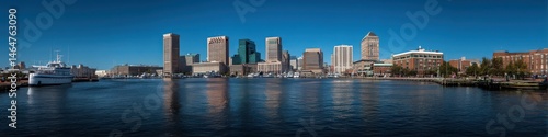 Fototapeta premium Norfolk Cityscape: Vibrant Skyline and Dock Life with Skyscrapers and Boats...
